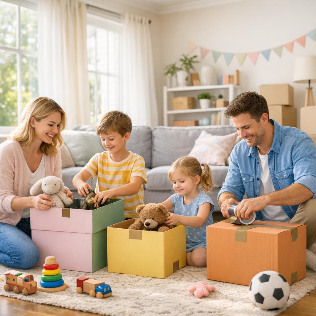- Schon beim Sortieren und Packen können Kinder mit kleinen Aufgaben einbezogen werden, wie das Verpacken ihrer Spielsachen, um ihre Beteiligung zu fördern.